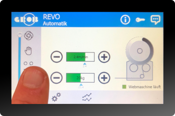 Der Dockenwickler "REVO" ist konzipiert für den Einsatz im Bereich der Massenproduktion von Standardgeweben und überzeugt durch sein herausragendes Preis-/ Leistungsverhältnis ohne dabei Kompromisse bezüglich Maschinen- und Wickelqualität eingehen zu müssen. Ausgestattet mit modernster Antriebstechnologie, sowie komfortabler und einfacher Bedienung, erlaubt dieser kompakte Dockenwickler-Typ das Herstellen erstklassiger Tuchrollen bei niedrigem Stromverbrauch. Diverse Ausstattungsoptionen erweitern das Einsatzgebiet und ermöglichen bei textilen Problemstellungen der modernen Weberei eine Lösung zu bieten.